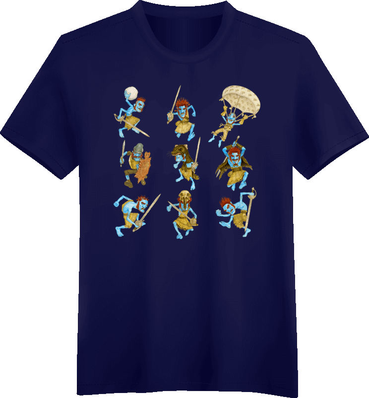 This high quality Gildan t-shirt is screen printed with a design by Discworld artist Paul Kidby, showing nine of the most well-known members of clan Nac Mac Feegle.