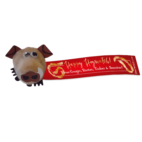 £1.25Happy Hogswatch from The Hogfather and all his Hogs – Rooter, Tusker, Gouger & Snouter.