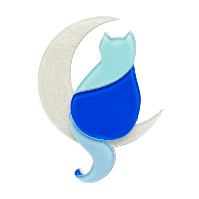No cheese here, just a moment of quite reflection for this elegant cat sitting on a crescent moon brooch. Lovingly hand-created from a combination of textured, solid and bubble resin, could this piece be the kindred spirit to join you in your new dance.